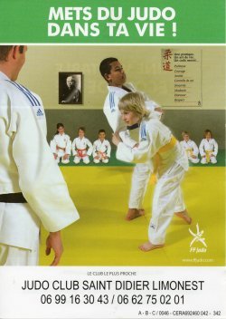 Un dossier d’inscription sera transmis en réponse à toute demande faite par mail à l’adresse du club : judoclubsaintdidierlimonest@orange.fr